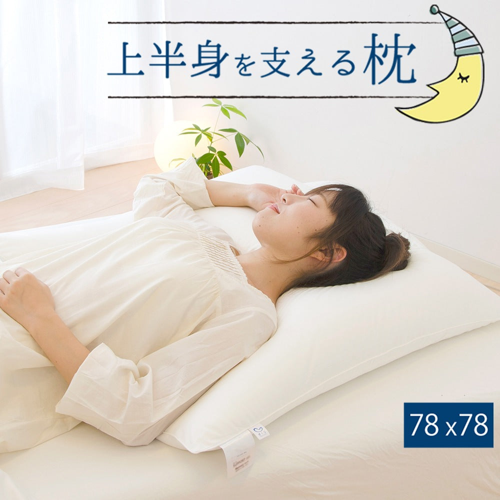 78×78㎝の大きいサイズで、首や肩へかかる体圧が分散されるので、仰向き寝、横向き寝でも寝心地のよい枕です。